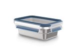 Die Kombination aus Edelstahlfarbe und blauen Akzenten sorgt nicht nur für eine ansprechende Optik, sondern macht die EMSA Frischhaltedose auch zu einem praktischen Küchenhelfer.